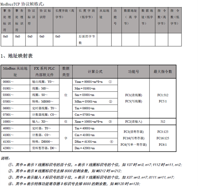 BCNet-FX模塊內(nèi)部集成ModbusTCP通訊服務(wù)器,因此ModbusTCP客戶機,如支持ModbusTCP的組態(tài)軟件、OPC服務(wù)器、PLC以及實現(xiàn)ModbusTCP客戶機的高級語言開發(fā)的軟件等,可以直接訪問三菱FX系列PLC的內(nèi)部數(shù)據(jù)區(qū),Modbus協(xié)議地址在BCNet內(nèi)部已經(jīng)被默認(rèn)映射到FX系列PLC的地址區(qū),實現(xiàn)的功能號包括:FC1、FC2、FC3、FC5、FC6和FC16。