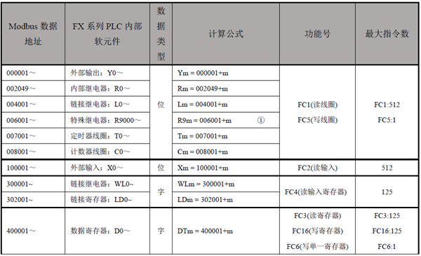 Modbus協(xié)議地址在BCNet內(nèi)部已經(jīng)被默認映射到FP-X系列PLC的地址區(qū),實現(xiàn)的功能號包括:FC1、FC2、FC3、FC5、FC6和FC16。